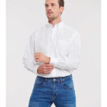 135 g/m² (White:130 g/m² ). 70% algodón, 30% poliéster. Cuello abotonado. Canesú trasero con 2 pliegues laterales. Bolsillo en forma de V sobre el pecho izquierdo. Corte clásico. Dobladillo redondeado. Botones de repuesto. Fácil cuidado.
