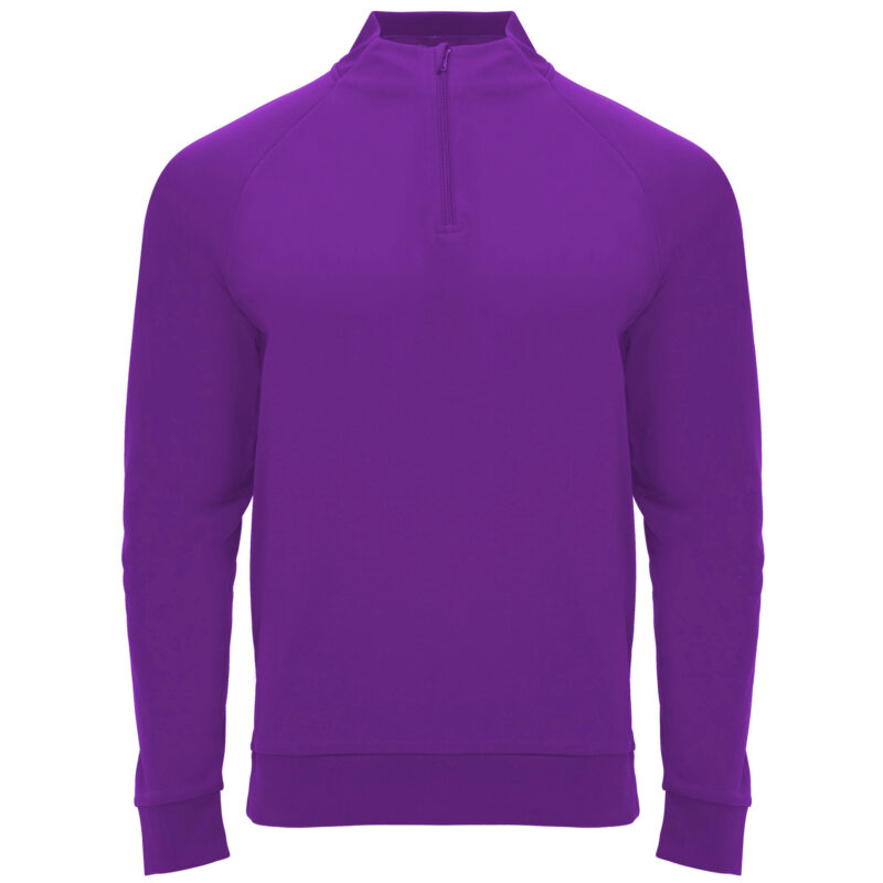 Chaqueta deportiva manga ranglan media cremallera. Tejido perchado. Pieza trasera en el cuello y puños de canalé 1×1. Combinable con pantalón NEAPOLIS 0521.