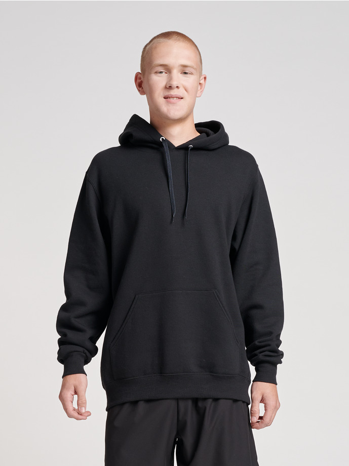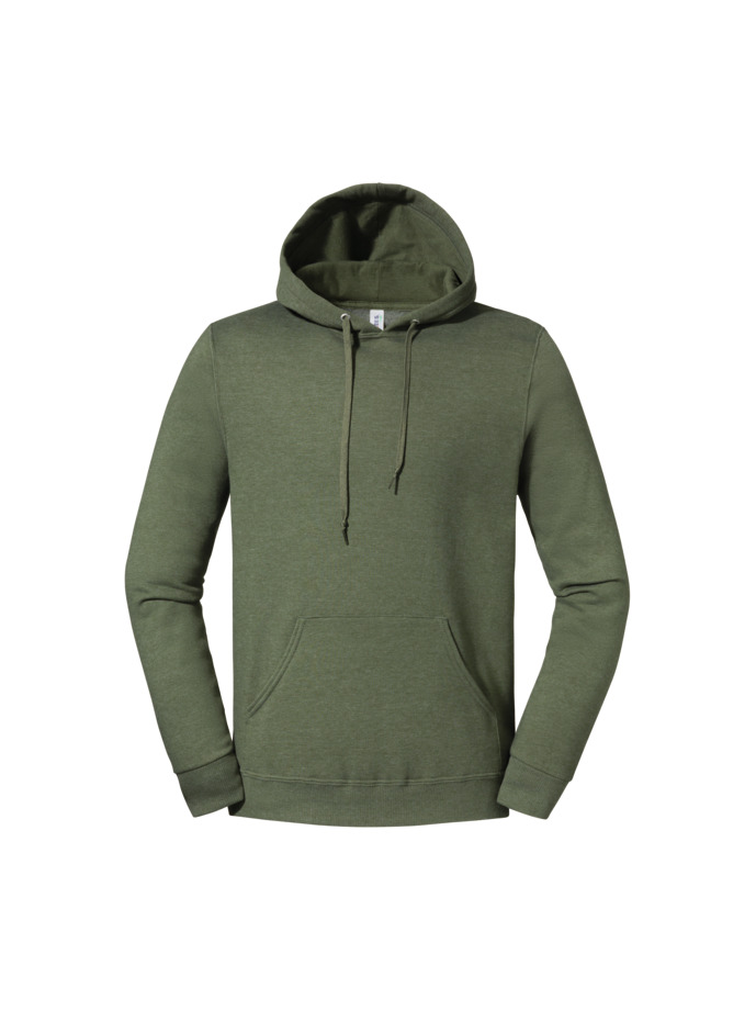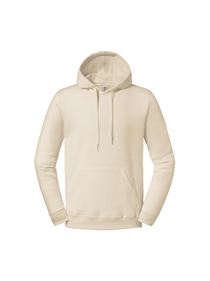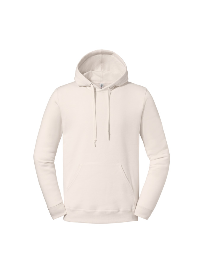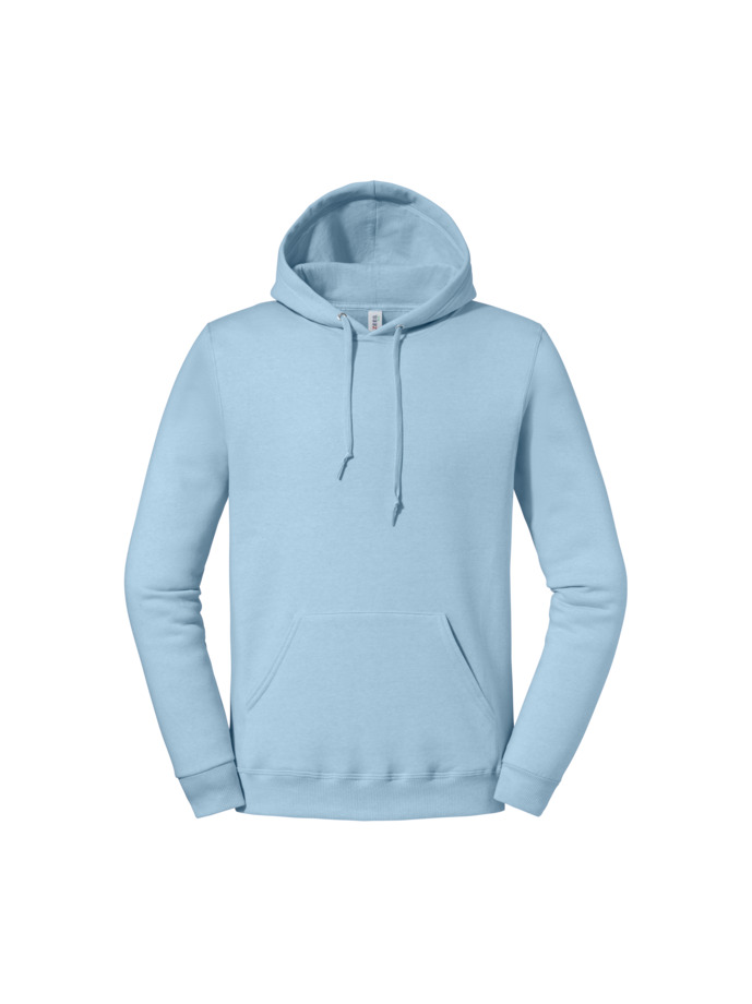 Felpa de tres hilos de algodón para una suavidad de calidad superior. 100 % poliéster reciclado y algodón estadounidense de origen sostenible. Tejido regulador de la humedad para una sensación de bienestar a lo largo del día. Alta densidad de las puntadas para ofrecer una superficie lisa para la impresión. Capucha de doble capa, forro de tejido jersey y ojales. Bolsillo delantero tipo canguro. Cordón ribeteado del mismo color con nudo. Pespunte a dos agujas en cuello, sisas y cintura. Cubrecosturas de hombro a hombro. Canalé 2×2 en los puños y en la cintura. Lavado de ropa a 40 °C o menos.